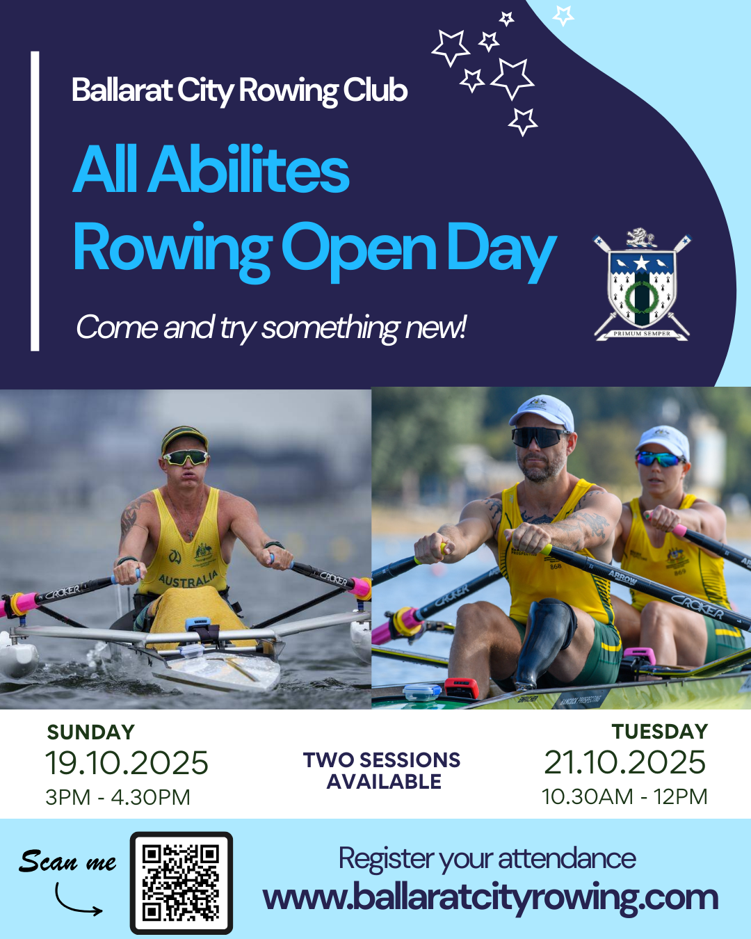 ALL ABILITIES ROWING DAY: Ballarat City Rowing Club is delighted to be able to provide an opportunity for our all abilities community members to come and try rowing at our rowing shed!