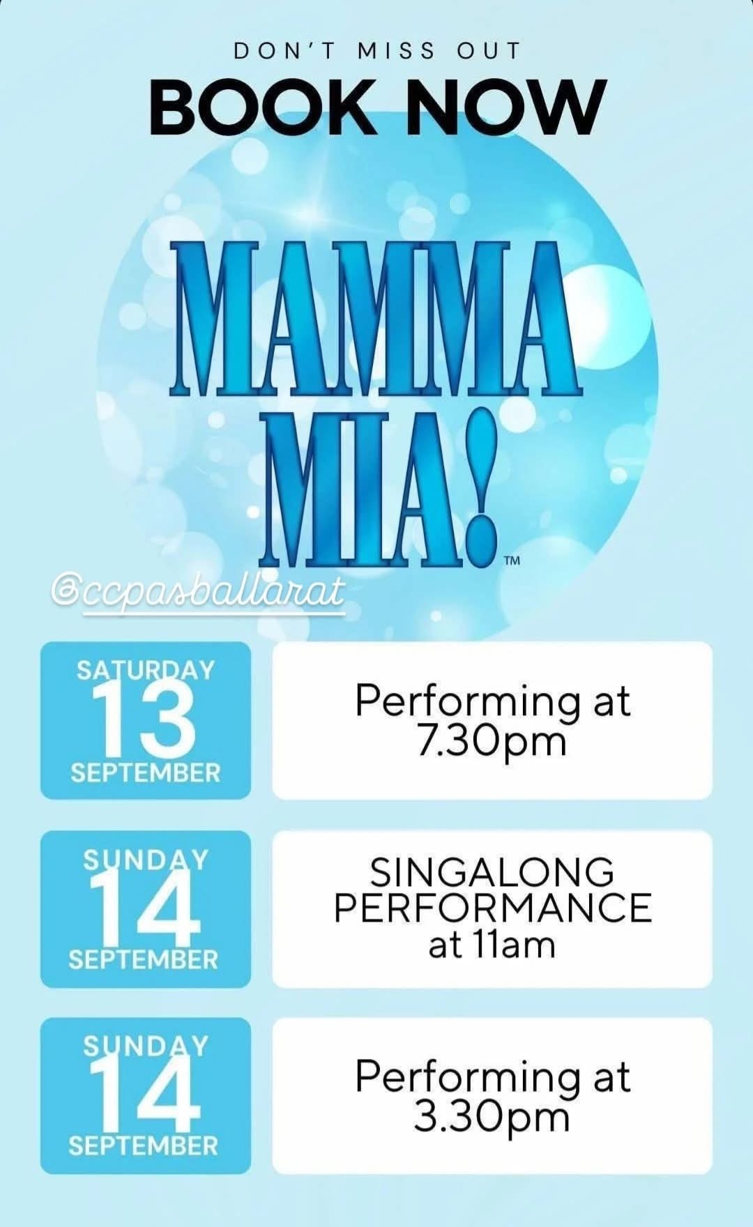 Curtain Call Performing Arts Studios presents Mamma Mia at Gay Gough theatre in Mt Clear.
