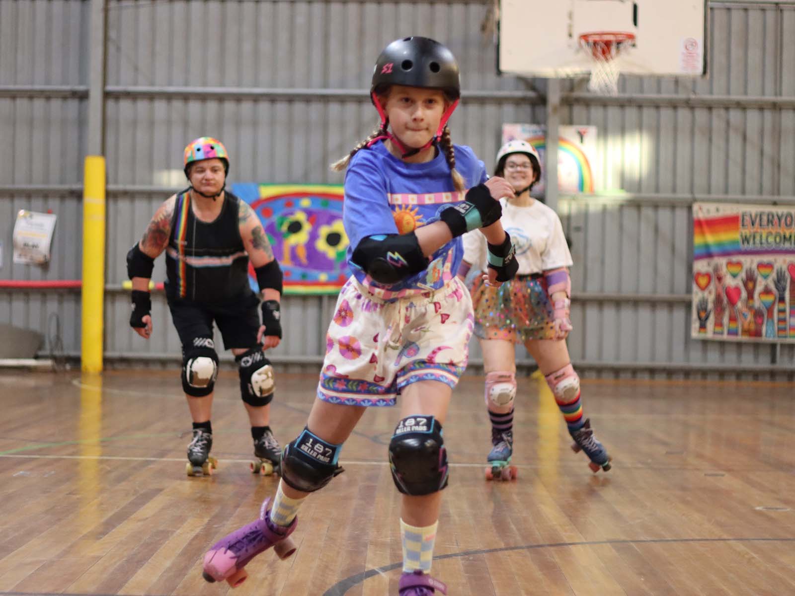 They will start the session by running a quick introduction to skating, stopping and falling safely for those who need guidance.