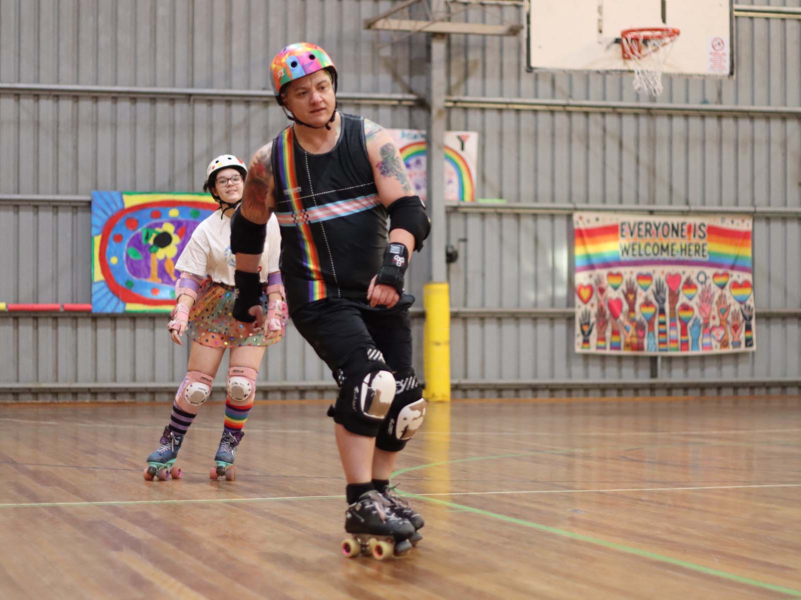All skates and protective gear provided at no extra cost; skaters are also welcome to bring their own.